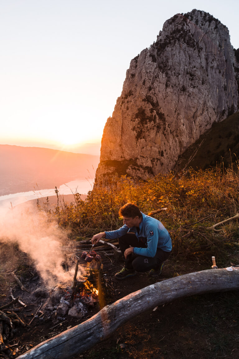 Je cuisine depuis un territoire qui m’accompagne chaque jour. Le lac d’Annecy, la baie de Talloires, les pentes du Semnoz, les forêts du Roc de Chère… Dans cet incroyable paysage alpin, chaque élément compte. La lumière bascule rapidement, l’air se densifie d’humidité, une herbe surgit au bord d’un sentier puis s’efface quelques jours plus tard. Je passe du temps dehors, à marcher, à pédaler, à observer ce que la saison rend possible. C’est souvent là que naît une idée, dans un détail presque discret.